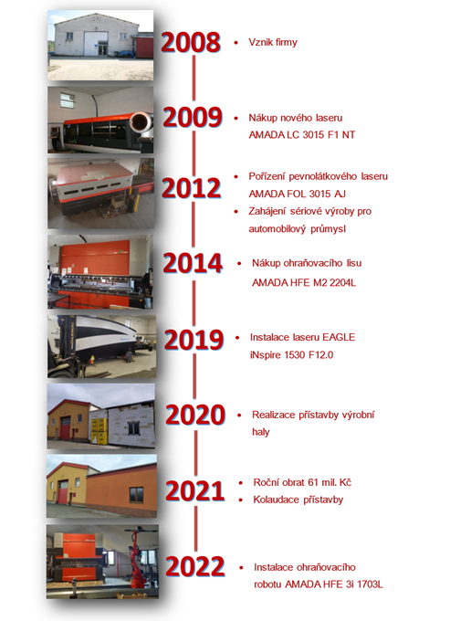 Jsme malá rodinná firma zabývající se zakázkovou kusovou a sériovou výrobou dílů z kovu. Polotovary dodáváme pro automobilový a strojírenský průmysl. Naše služby využívají i firmy zabývající se technickým tiskem a výrobou technických i dekorativních svítidel.